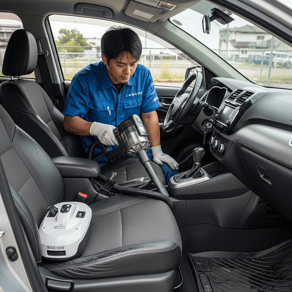 ビュートストーリーは第一印象が査定の8割を決めます。シート隙間のゴミ除去、マット洗浄、樹脂パーツ艶出しで新車級の清潔感に。特に臭いゼロなら「禁煙車」扱いで+5~8万円UP。