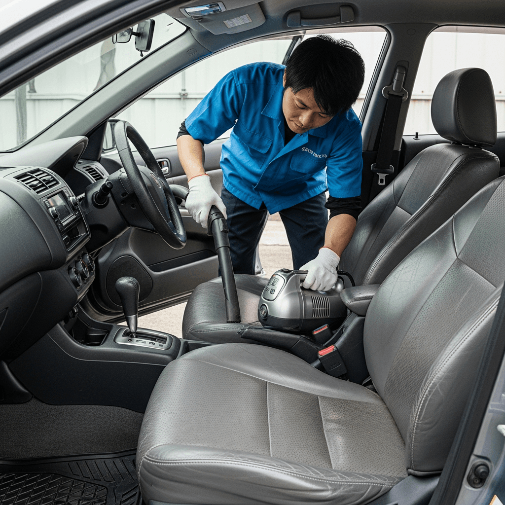 ビガーは第一印象が査定の8割を決めます。シート隙間のゴミ除去、マット洗浄、樹脂パーツ艶出しで新車級の清潔感に。特に臭いゼロなら「禁煙車」扱いで+5~8万円UP。