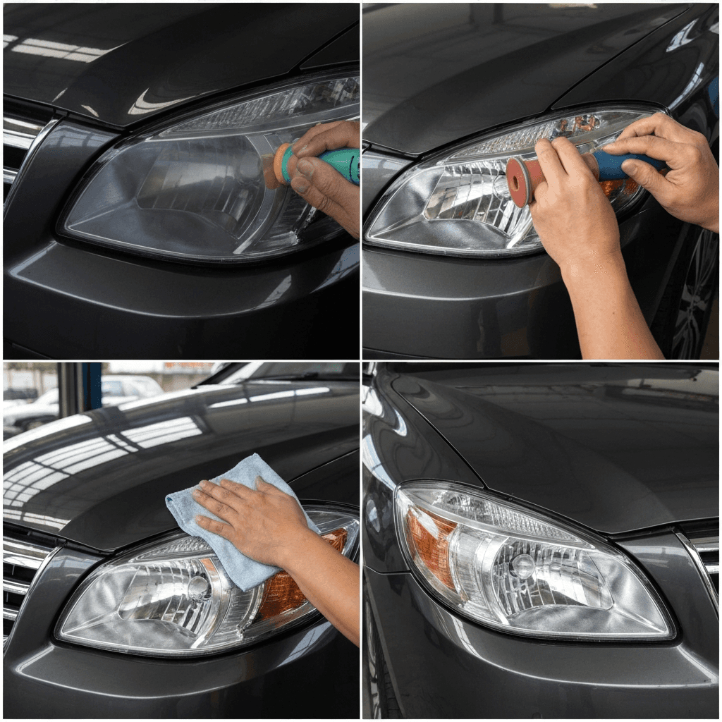 ヘッドライト黄ばみ除去+ボディ鉄粉除去で輝き復活!