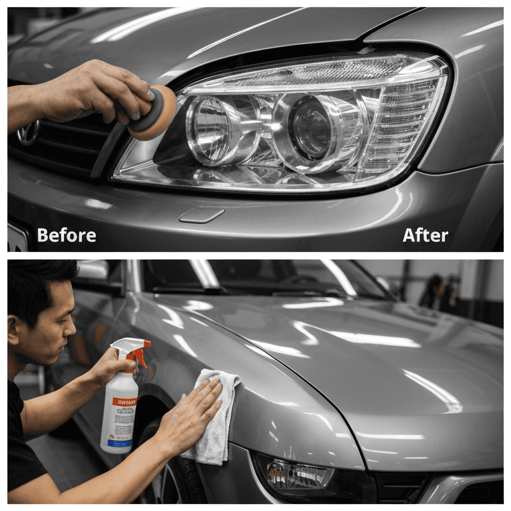 ヘッドライト黄ばみ除去+ボディ鉄粉除去で輝き復活!