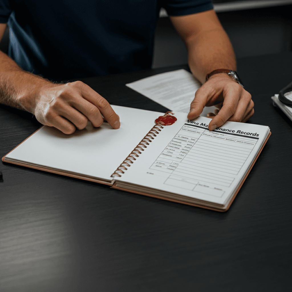 ビスタアルデオの整備記録簿に定期点検(12ヶ月・24ヶ月)の履歴が全て記載されていれば「管理の行き届いた車」と高評価。特にエンジンオイル交換履歴は重要で+6~9万円の効果。