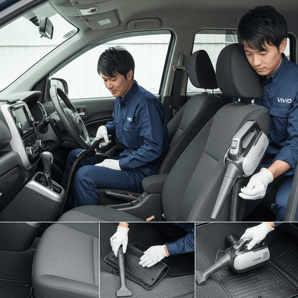 ヴィヴィオタルガトップは第一印象が査定の8割を決めます。シート隙間のゴミ除去、マット洗浄、樹脂パーツ艶出しで新車級の清潔感に。特に臭いゼロなら「禁煙車」扱いで+5~8万円UP。