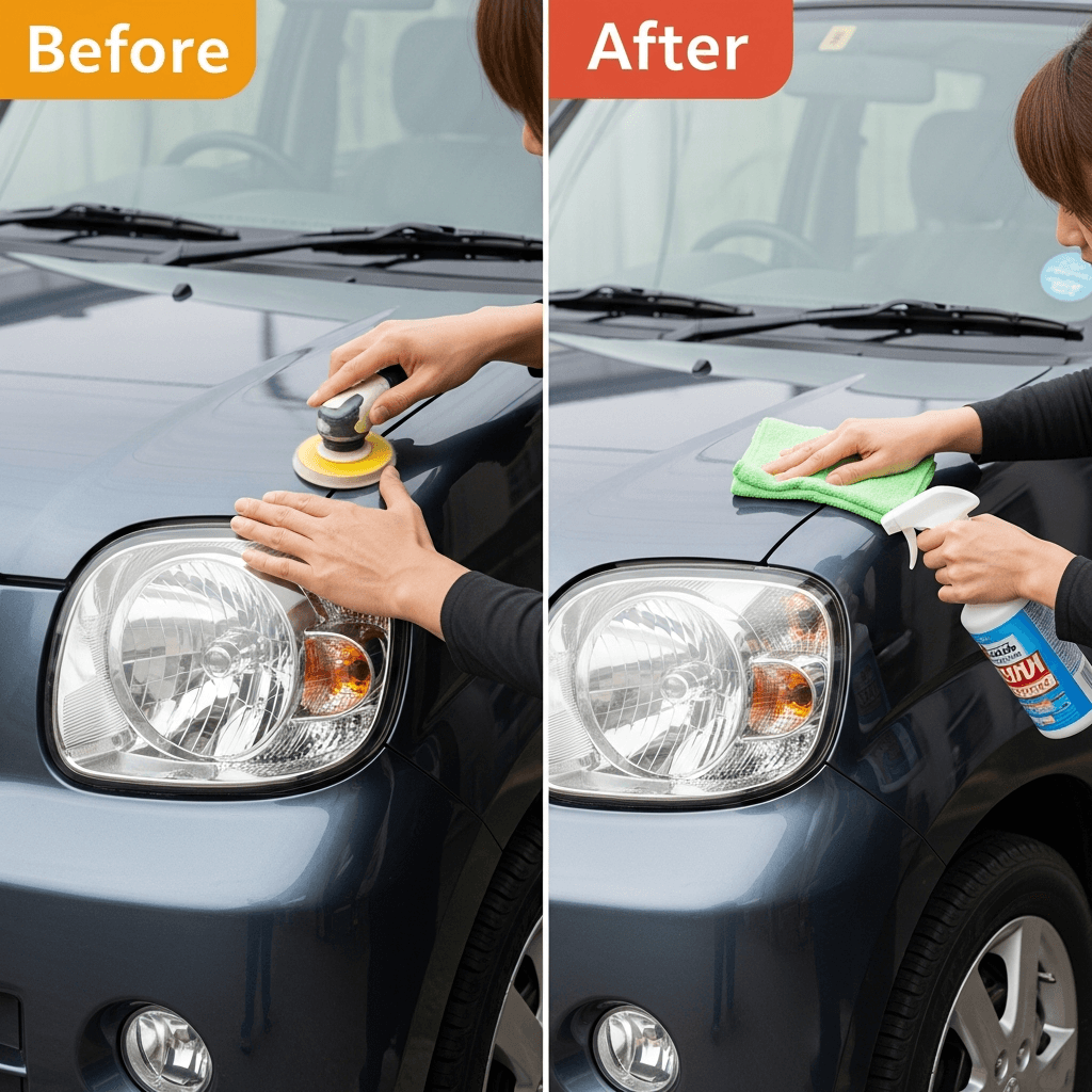 ヘッドライト黄ばみ除去+ボディ鉄粉除去で輝き復活!