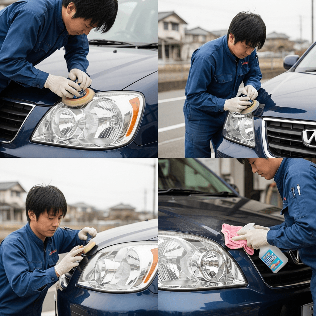 ヘッドライト黄ばみ除去+ボディ鉄粉除去で輝き復活!