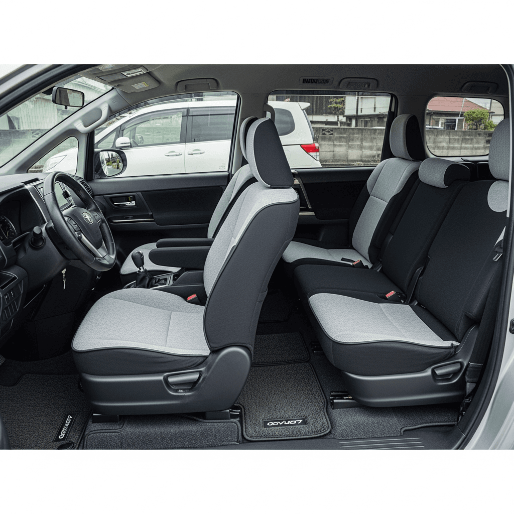 ヴォクシーは大家族利用が多く、3列目シートの汚れ・シミが査定マイナス要因。専用クリーナーで徹底清掃し、消臭スプレーで臭いゼロにすれば「禁煙・丁寧使用」の印象で+6~9万円UP。