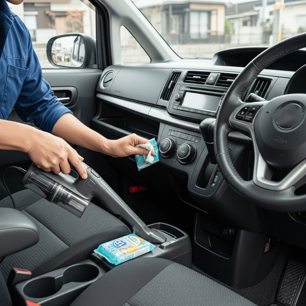 軽自動車は女性・高齢者の次オーナーが多く、清潔感が最重視されます。シート・フロアマット・ダッシュボードを徹底清掃し、消臭剤で無臭化すれば+4~7万円の効果。