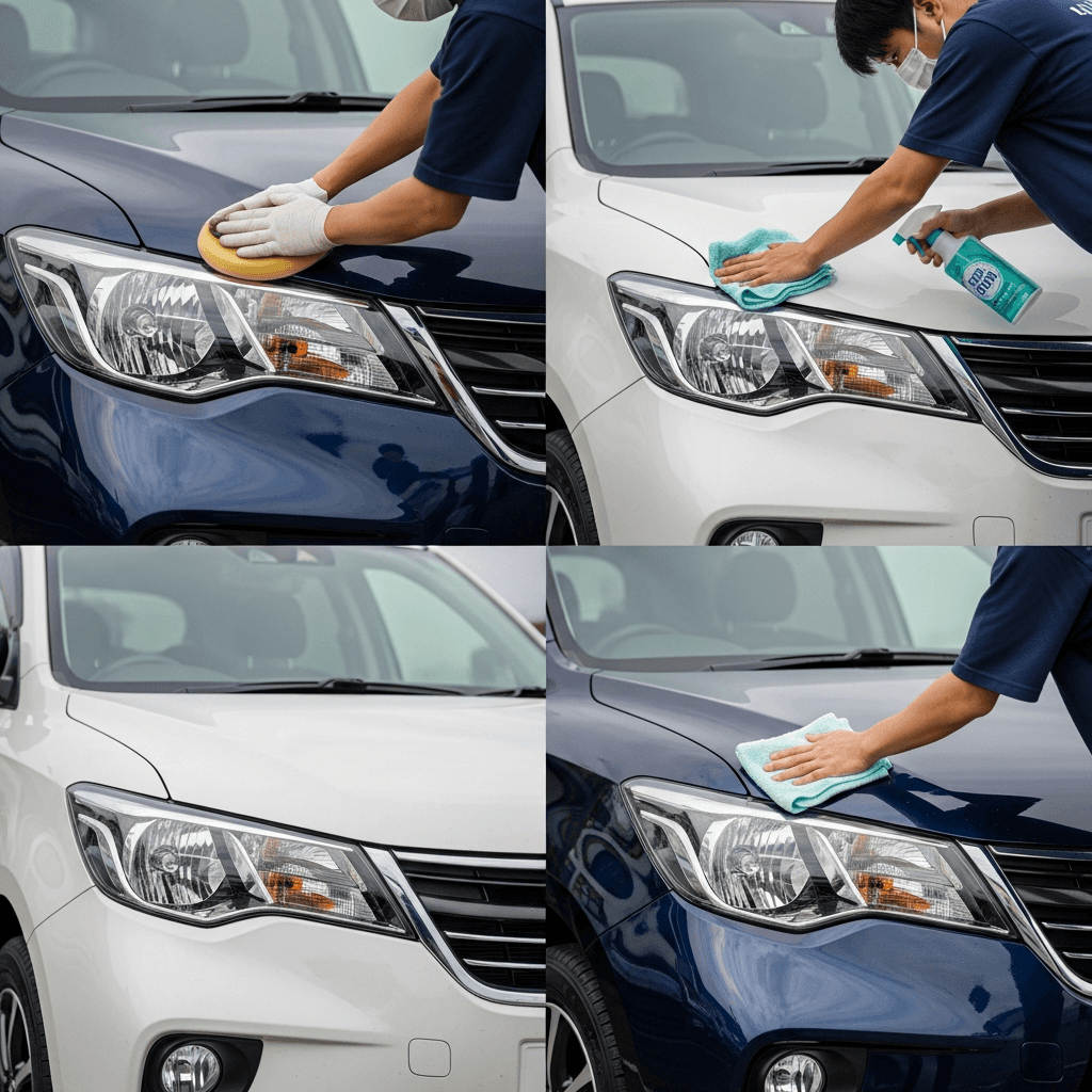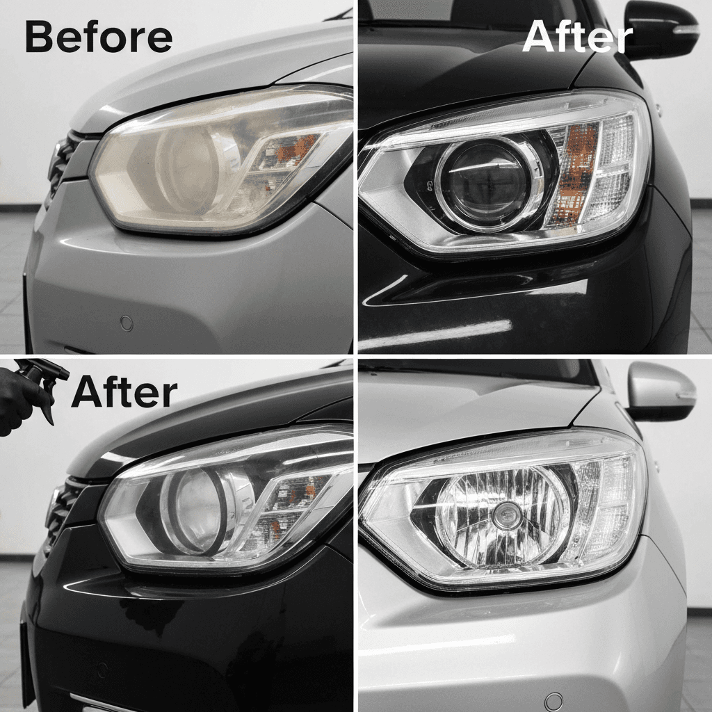 ヘッドライト黄ばみ除去+ボディ鉄粉除去で輝き復活!