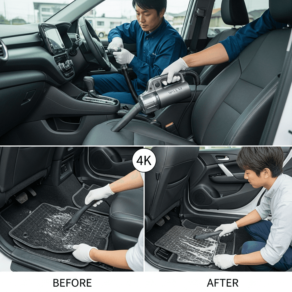 WiLL Viは第一印象が査定の8割を決めます。シート隙間のゴミ除去、マット洗浄、樹脂パーツ艶出しで新車級の清潔感に。特に臭いゼロなら「禁煙車」扱いで+5~8万円UP。