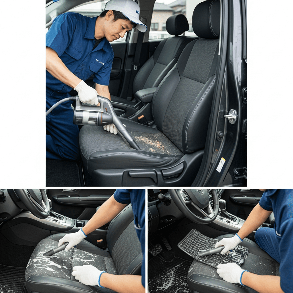 WiLL VSは第一印象が査定の8割を決めます。シート隙間のゴミ除去、マット洗浄、樹脂パーツ艶出しで新車級の清潔感に。特に臭いゼロなら「禁煙車」扱いで+5~8万円UP。
