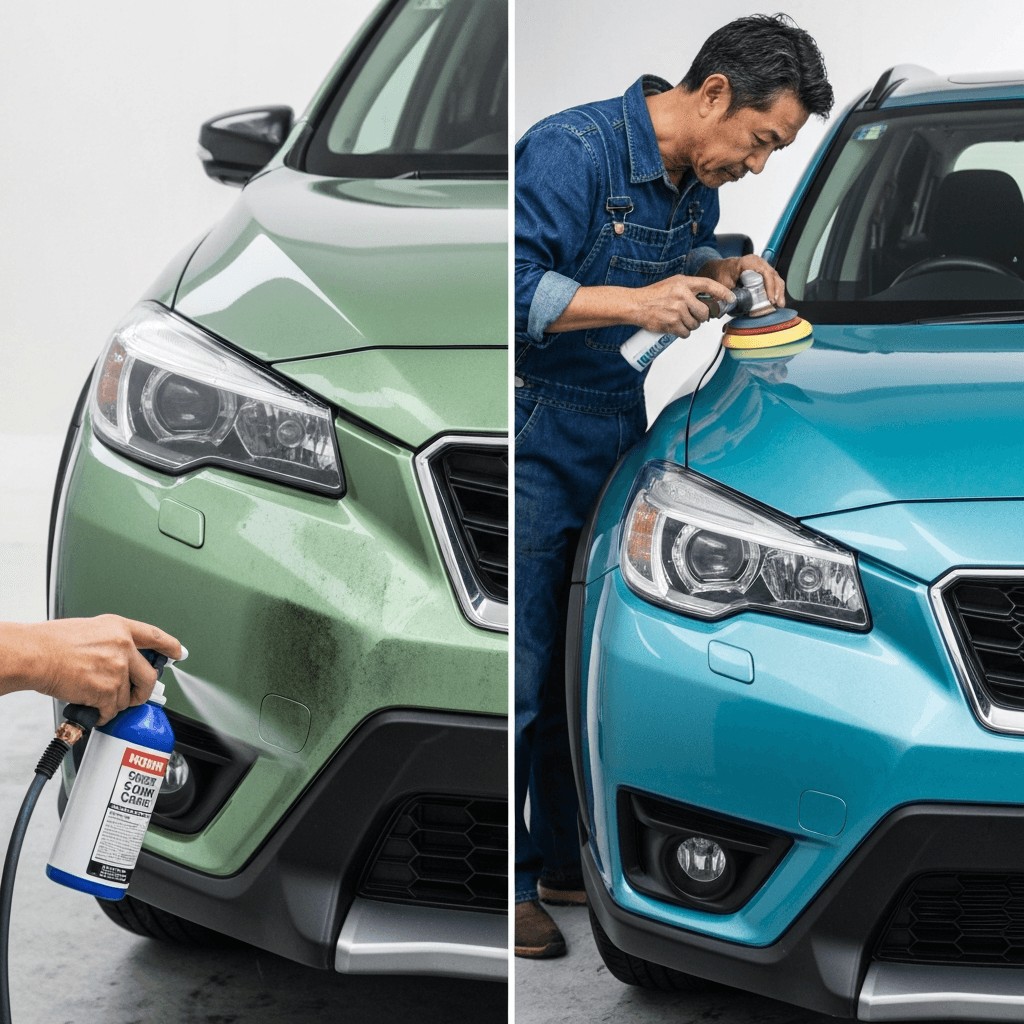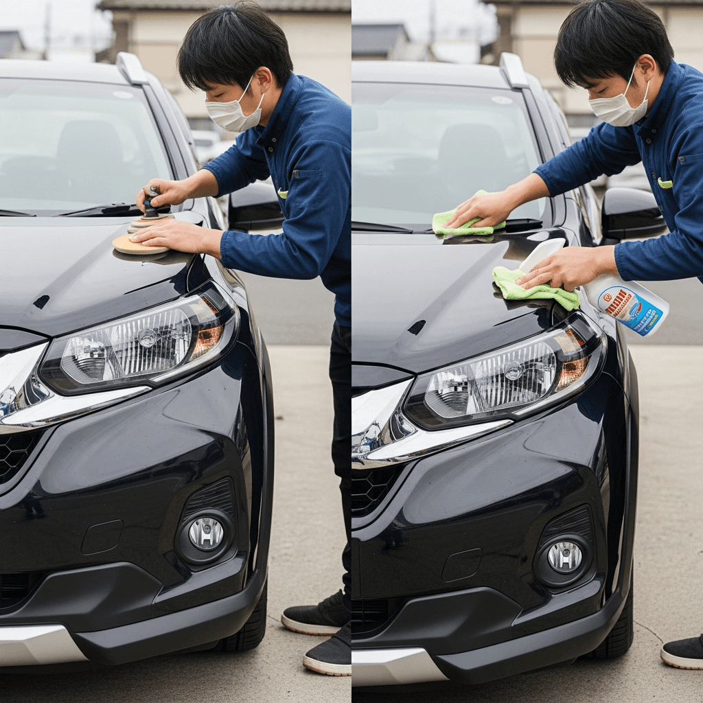 WR-Vはヘッドライトの黄ばみとボディの鉄粉が第一印象を損ねます。研磨+鉄粉除去クリーナー+ワックスで輝きを取り戻せば「程度良好」と判断され+4~7万円の効果。