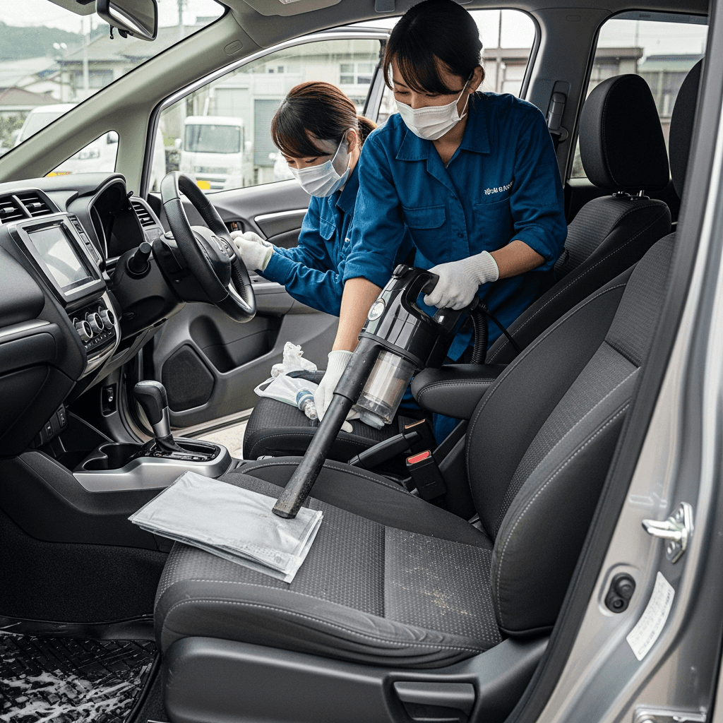 WR-Vは第一印象が査定の8割を決めます。シート隙間のゴミ除去、マット洗浄、樹脂パーツ艶出しで新車級の清潔感に。特に臭いゼロなら「禁煙車」扱いで+5~8万円UP。
