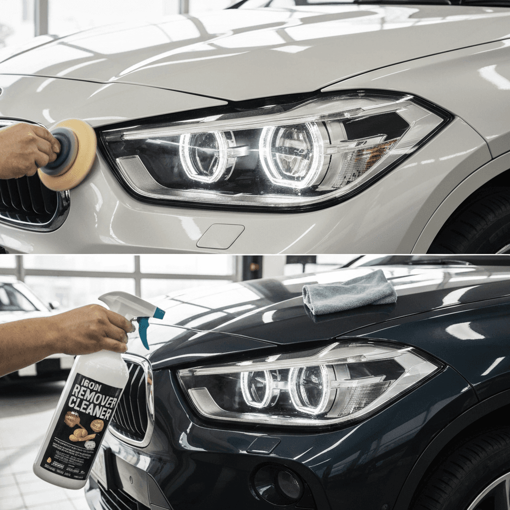 ヘッドライト黄ばみ除去+ボディ鉄粉除去で輝き復活!