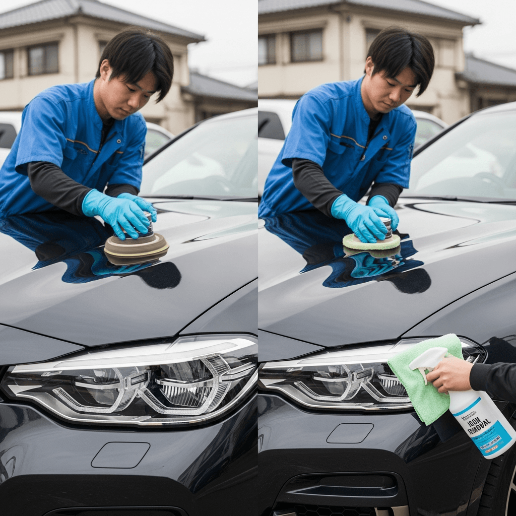 ヘッドライト黄ばみ除去+ボディ鉄粉除去で輝き復活!