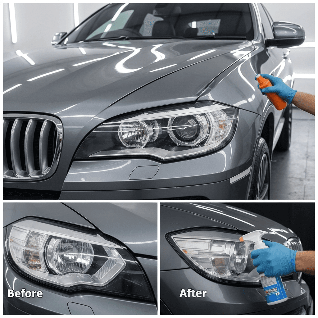 ヘッドライト黄ばみ除去+ボディ鉄粉除去で輝き復活!