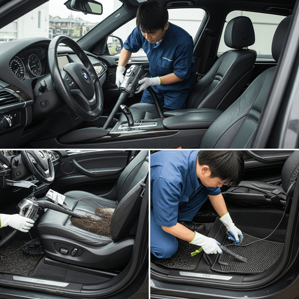 X6は第一印象が査定の8割を決めます。シート隙間のゴミ除去、マット洗浄、樹脂パーツ艶出しで新車級の清潔感に。特に臭いゼロなら「禁煙車」扱いで+5~8万円UP。