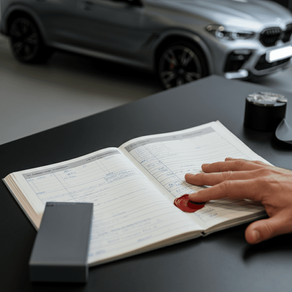 X6 Mの整備記録簿に定期点検(12ヶ月・24ヶ月)の履歴が全て記載されていれば「管理の行き届いた車」と高評価。特にエンジンオイル交換履歴は重要で+6~9万円の効果。