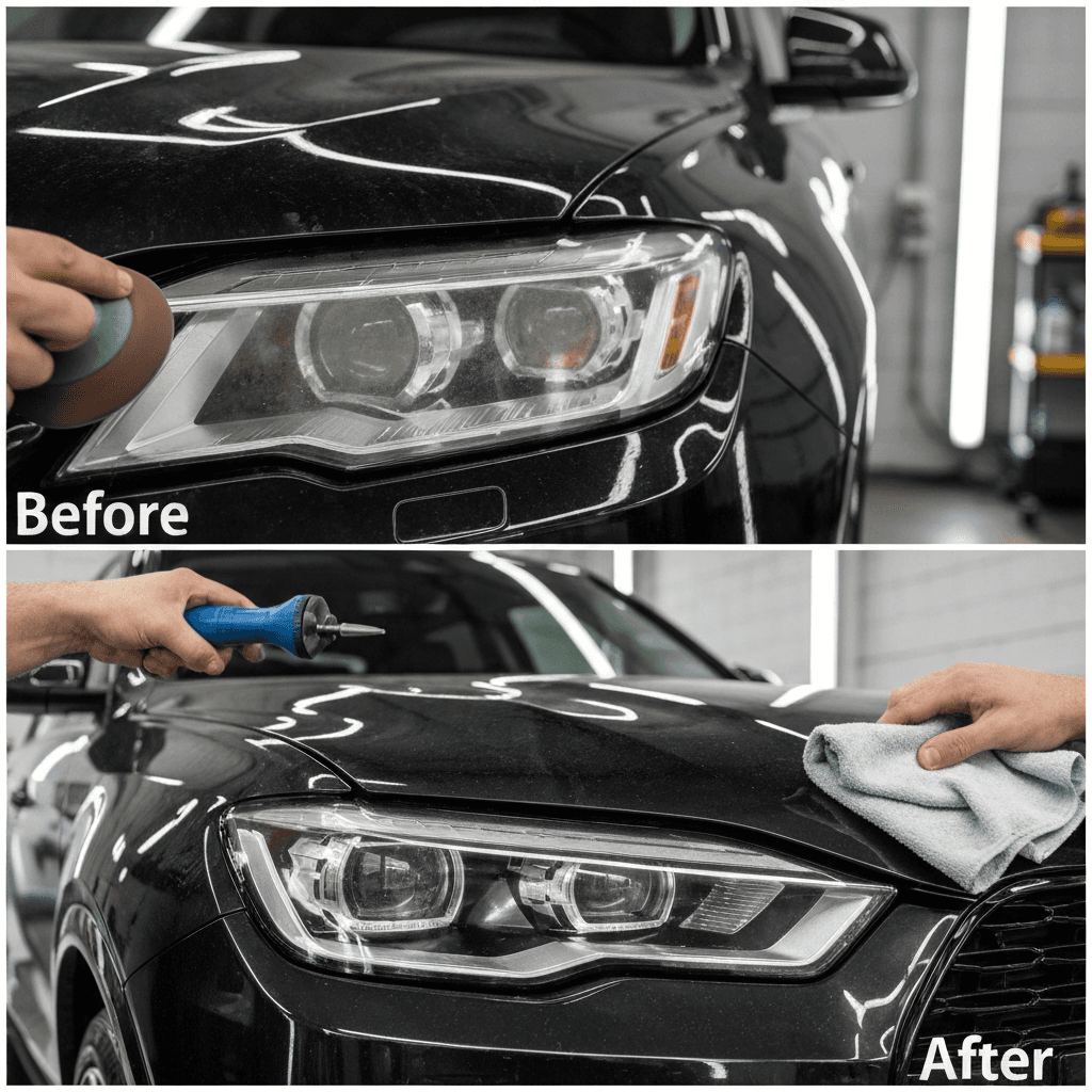 ヘッドライト黄ばみ除去+ボディ鉄粉除去で輝き復活!