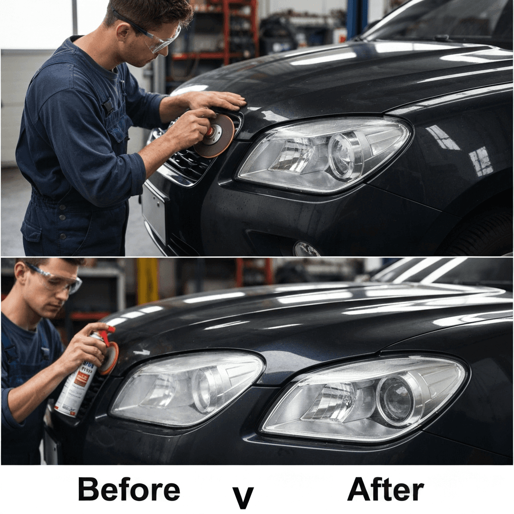 ヘッドライト黄ばみ除去+ボディ鉄粉除去で輝き復活!