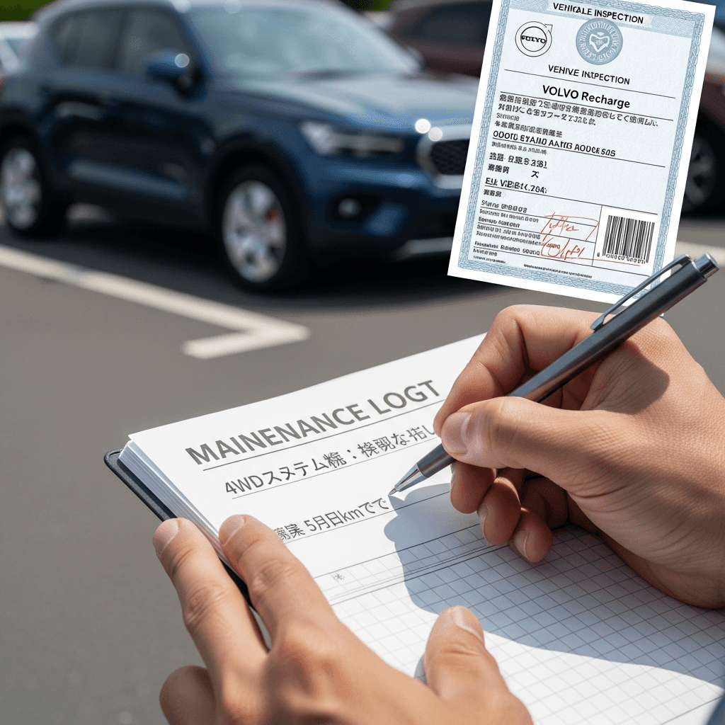 XC40リチャージのようなSUVは4WD性能が価値の源泉。4WDシステム点検とデフオイル交換記録があれば「オフロード性能維持」と高評価され、+8~12万円の査定UPが期待できます。