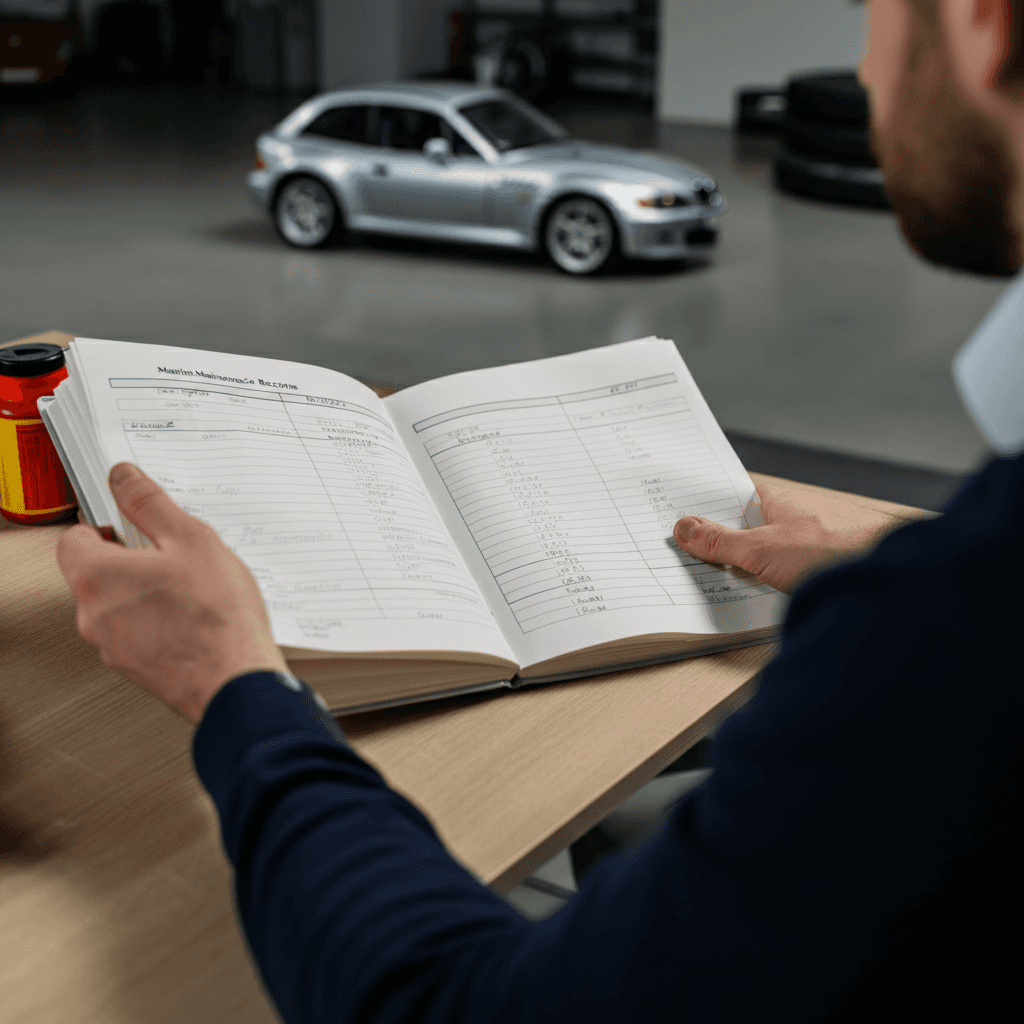 Z3クーペの整備記録簿に定期点検(12ヶ月・24ヶ月)の履歴が全て記載されていれば「管理の行き届いた車」と高評価。特にエンジンオイル交換履歴は重要で+6~9万円の効果。