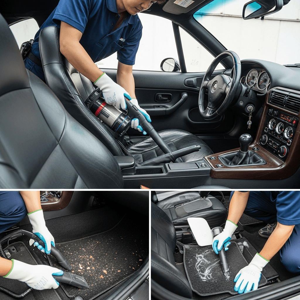 Z3 Mクーペは第一印象が査定の8割を決めます。シート隙間のゴミ除去、マット洗浄、樹脂パーツ艶出しで新車級の清潔感に。特に臭いゼロなら「禁煙車」扱いで+5~8万円UP。