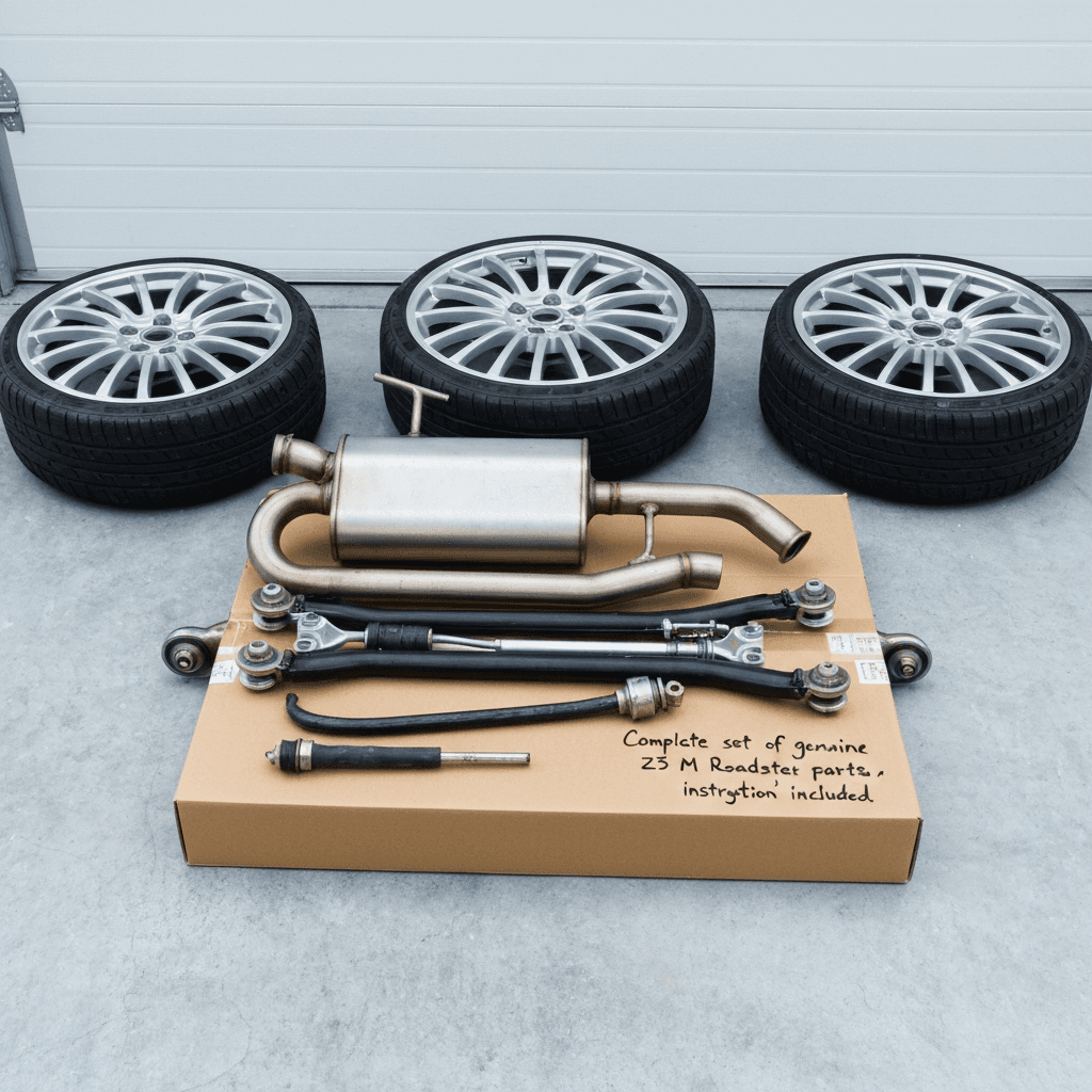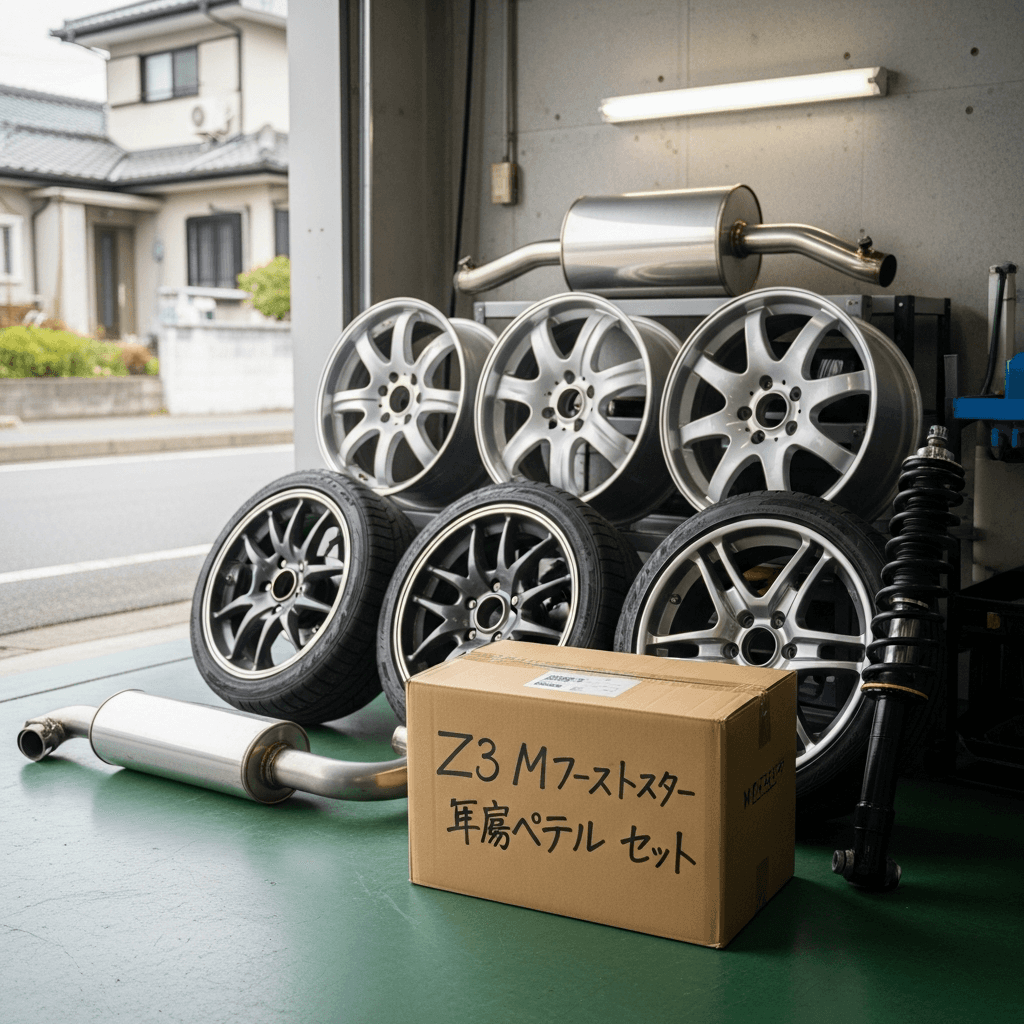 Z3 Mロードスターはカスタム車両が多いですが、純正マフラー・サスペンション・ホイールが保管されていれば査定額は下がりません。「純正戻し可能」をアピールすることで+7~10万円の価値創出。