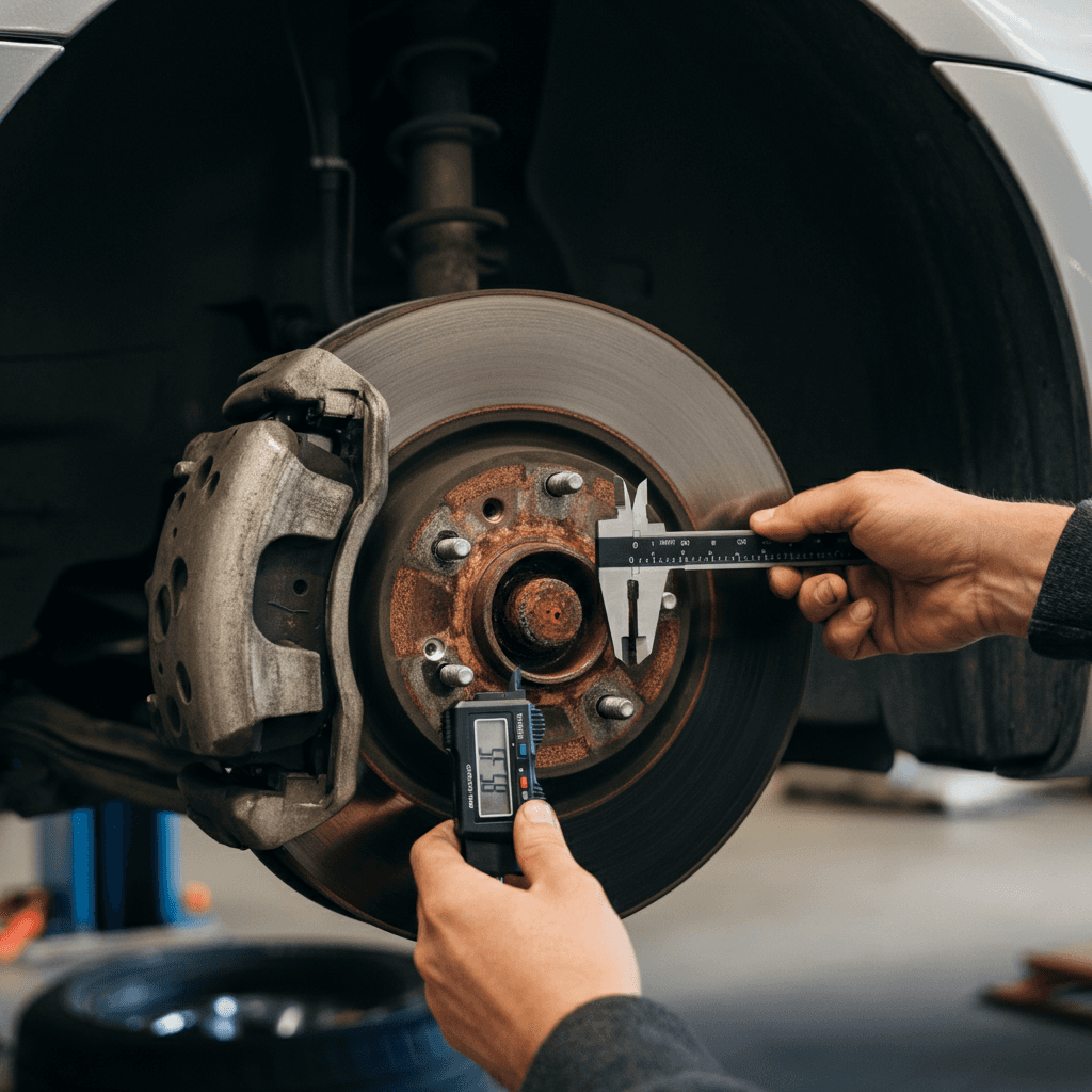 スポーツカーはブレーキとタイヤが査定の最重要項目。パッド残量6mm以上、タイヤ溝5mm以上を写真+ノギス測定値で証明すれば、「走行性能良好」の安心感を与え+8~12万円の評価UP。