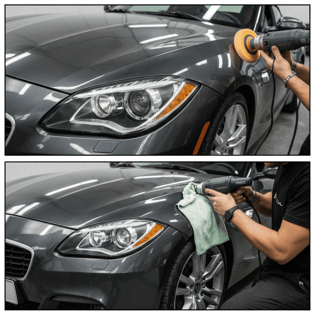 Z4はヘッドライトの黄ばみとボディの鉄粉が第一印象を損ねます。研磨+鉄粉除去クリーナー+ワックスで輝きを取り戻せば「程度良好」と判断され+4~7万円の効果。