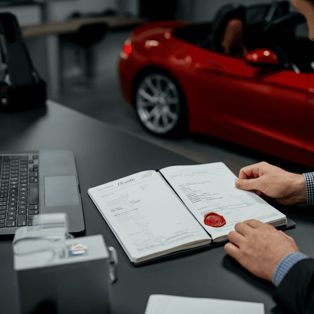 Z4クーペの整備記録簿に定期点検(12ヶ月・24ヶ月)の履歴が全て記載されていれば「管理の行き届いた車」と高評価。特にエンジンオイル交換履歴は重要で+6~9万円の効果。