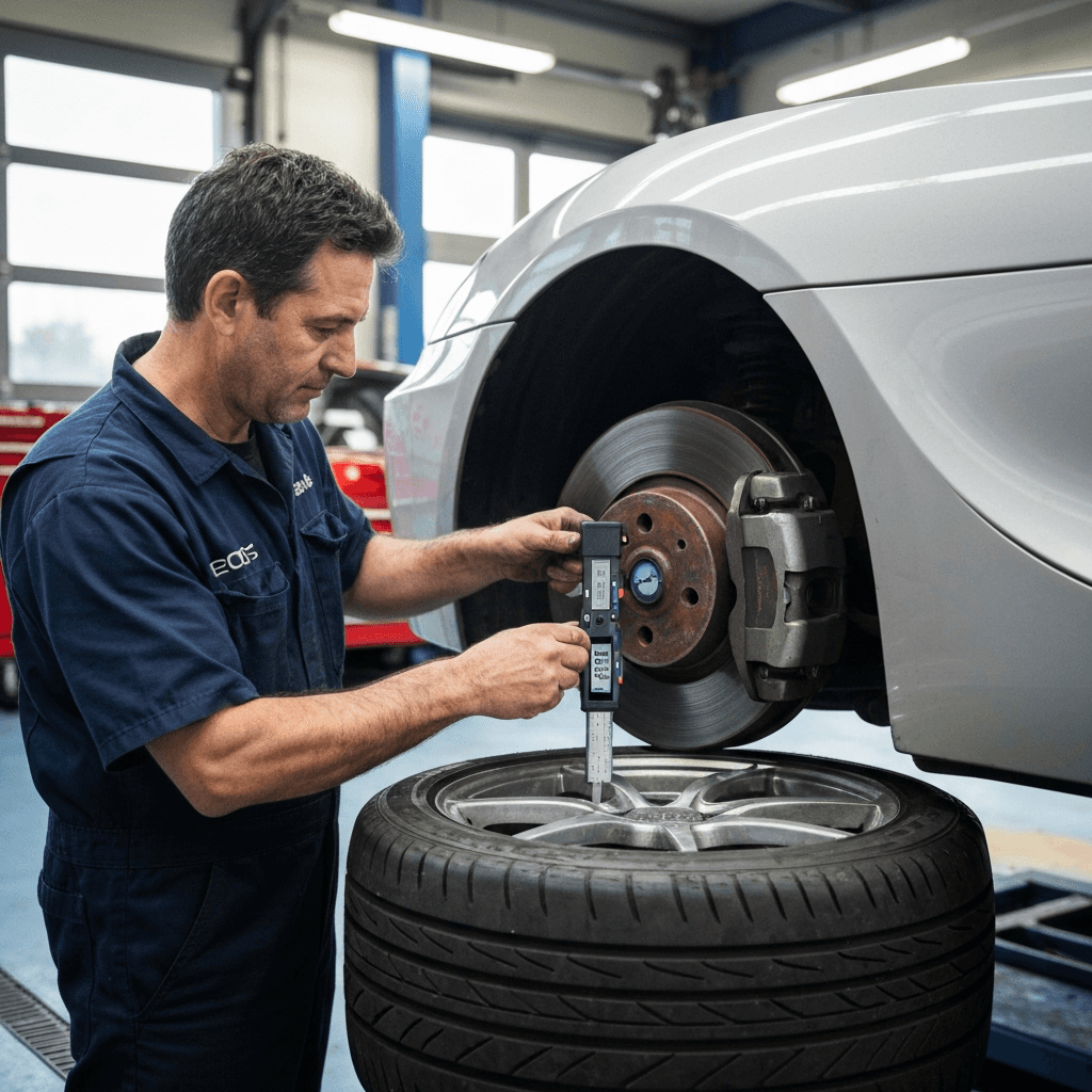 スポーツカーはブレーキとタイヤが査定の最重要項目。パッド残量6mm以上、タイヤ溝5mm以上を写真+ノギス測定値で証明すれば、「走行性能良好」の安心感を与え+8~12万円の評価UP。
