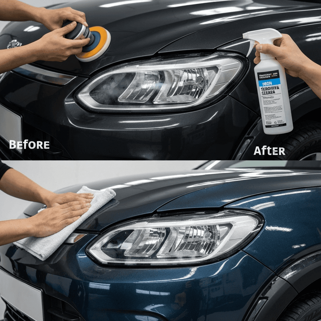 ヘッドライト黄ばみ除去+ボディ鉄粉除去で輝き復活!
