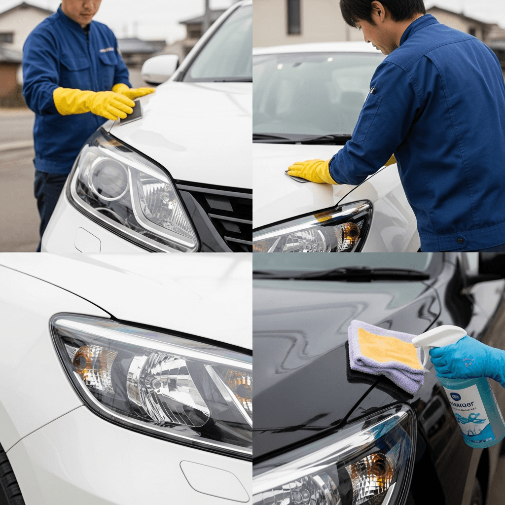 ゼロ1はヘッドライトの黄ばみとボディの鉄粉が第一印象を損ねます。研磨+鉄粉除去クリーナー+ワックスで輝きを取り戻せば「程度良好」と判断され+4~7万円の効果。