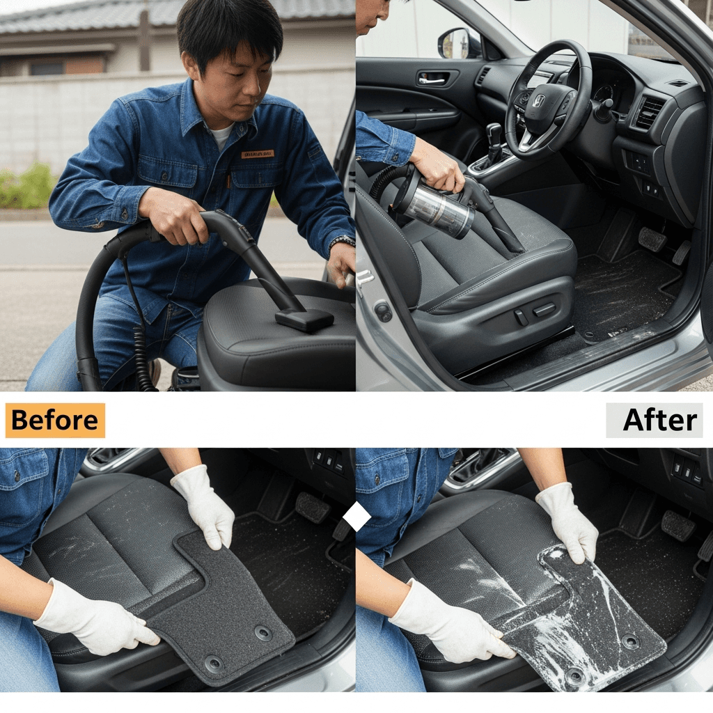 ZR-Vは第一印象が査定の8割を決めます。シート隙間のゴミ除去、マット洗浄、樹脂パーツ艶出しで新車級の清潔感に。特に臭いゼロなら「禁煙車」扱いで+5~8万円UP。