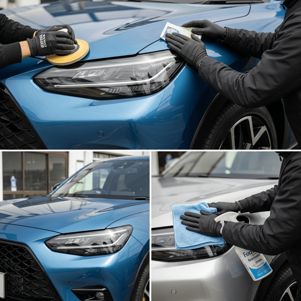 ヘッドライト黄ばみ除去+ボディ鉄粉除去で輝き復活!