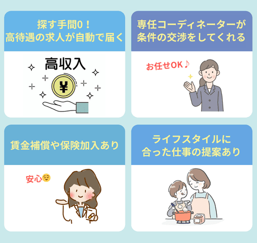 コーディネーターの方が私の条件に合った仕事をたくさん紹介してくださり、スムーズに仕事が決まりました。